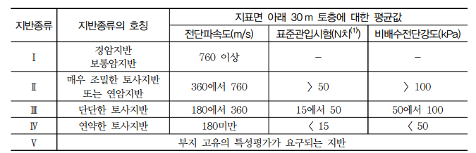 (2)지반종류Ⅴ는 부지의 특성 조사가 요구되는 다음 경우에 속하는 지반으로서, 전문가가 작성한 부지종속 설계응답스펙트럼을 사용하여야 한다.