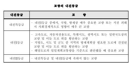 Ⅰ등급중요교량 (국가기간망, 고속도로, 주요 간선도로 등)지진 발생 시 즉시 통행 가능 수준의 내진성능 확보